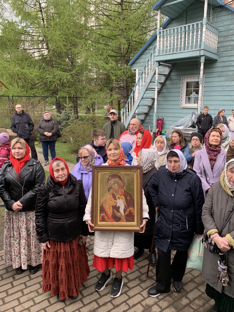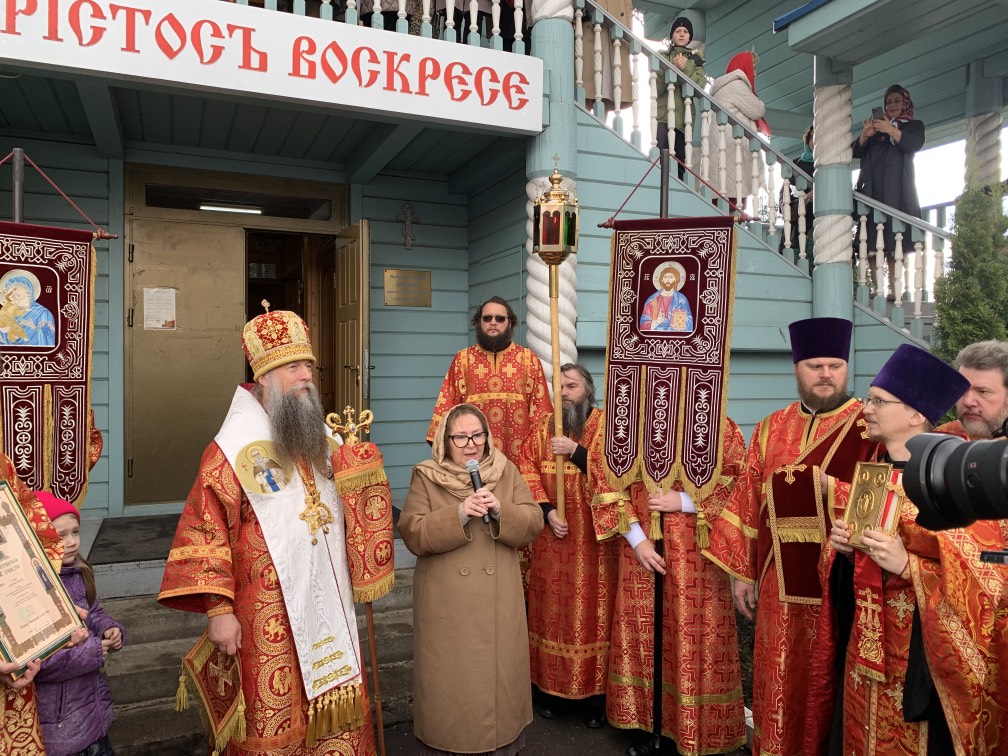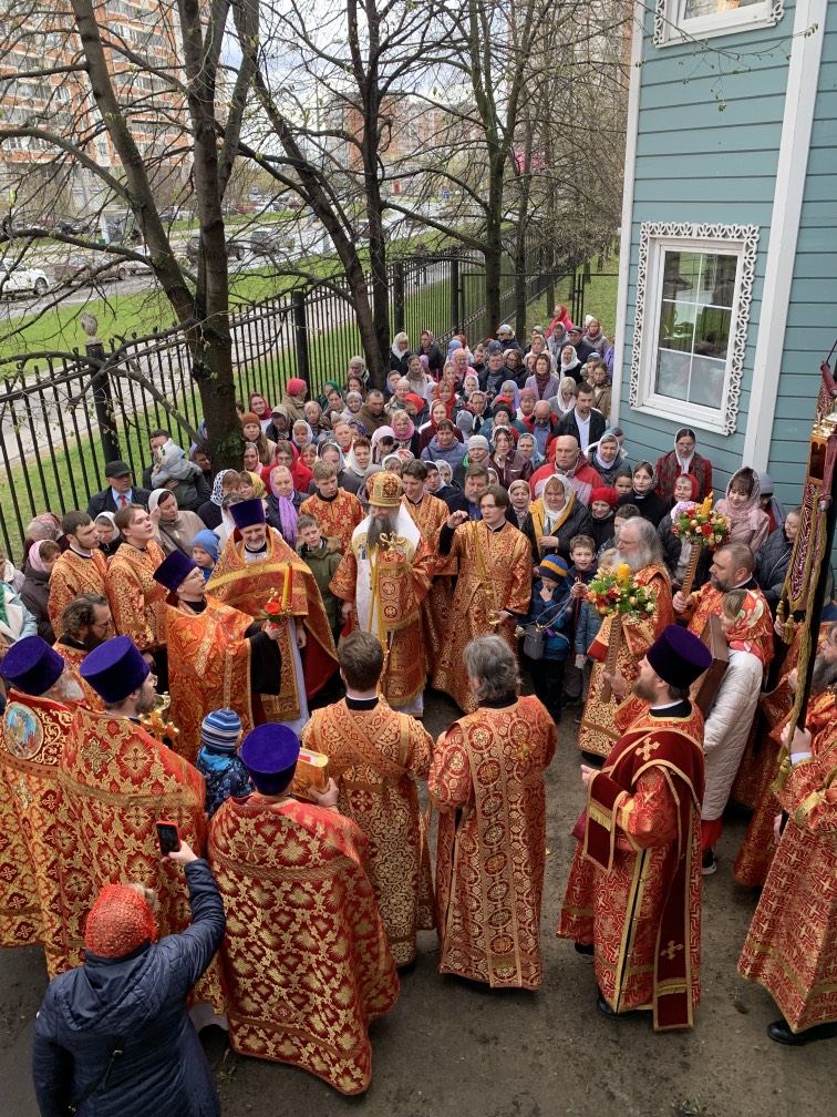 По завершении Божественной литургии состоялся крестный ход, по окончании которого епископ Мефодий поздравил прихожан и гостей храма с престольным праздником. Затем прозвучало поздравление от председателя правления Женского патриотического общества, ответственного секретаря попечительского совета строящегося храма святых Жен-Мироносиц в Марьине Г.В. Ананьиной. По традиции всем пришедшим девушкам и женщинам были вручены букеты белых хризантем.