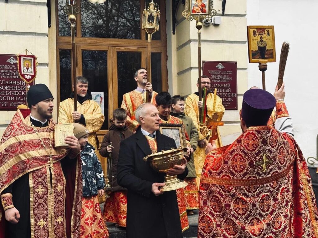 12 апреля 2026 года день Светлого Христова Воскресения клирик храма Успения Пресвятой Богородицы в Вешняках священник Георгий Фирсов вместе со слушателями воскресной школы для взрослых и молодёжью храма приняли участие в праздничной Божестсвенной литургии и Пасхальном крестном ходе, и поздравлении военнослужащих, проходящих лечение в Главном военном клиническом госпитале им. Н.Н. Бурденко.