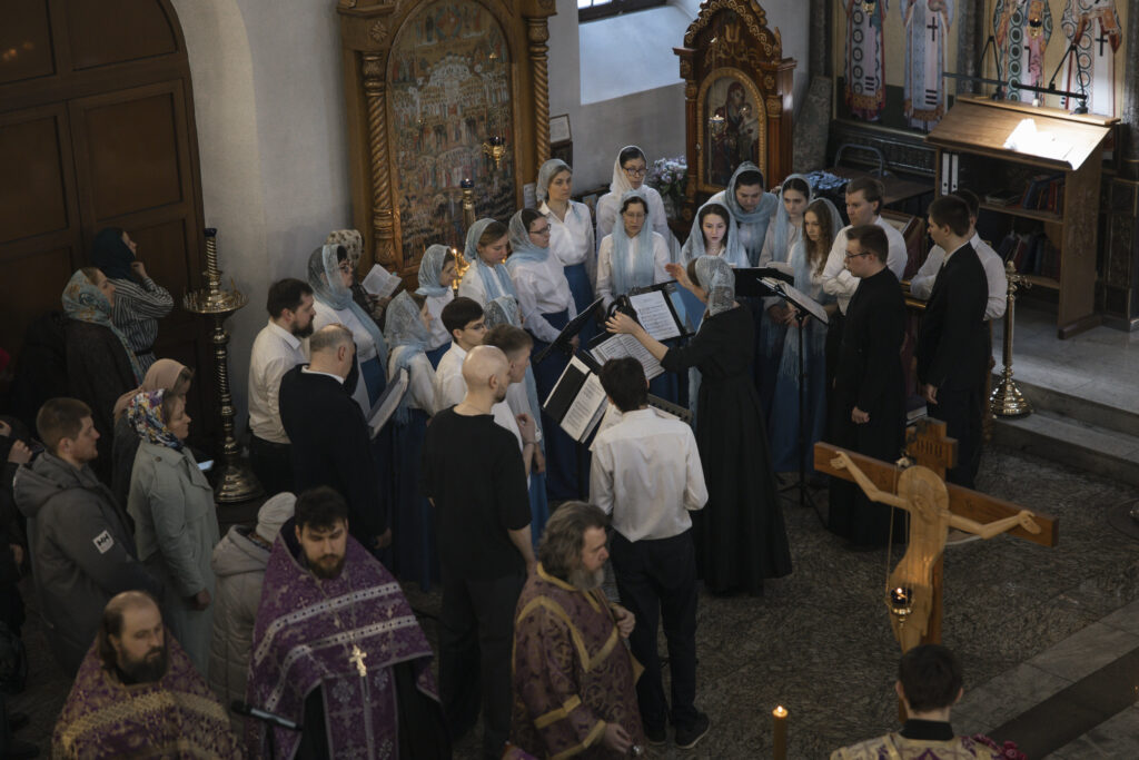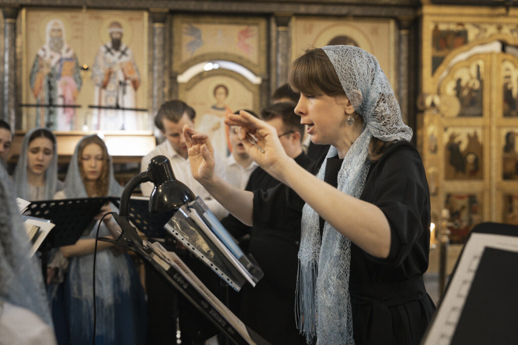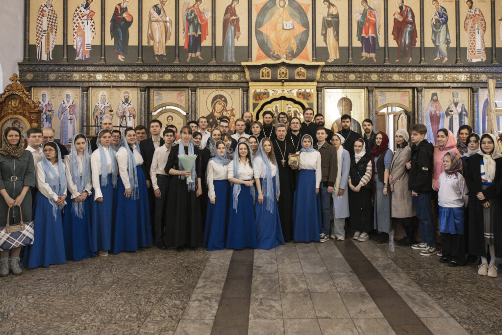 Богослужебные песнопения исполнил сводный молодежный хор Восточного викариатства под управлением Екатерины Резниковой.