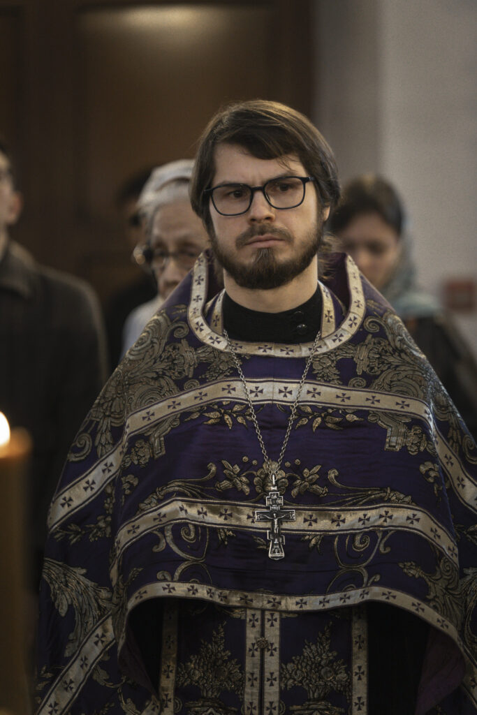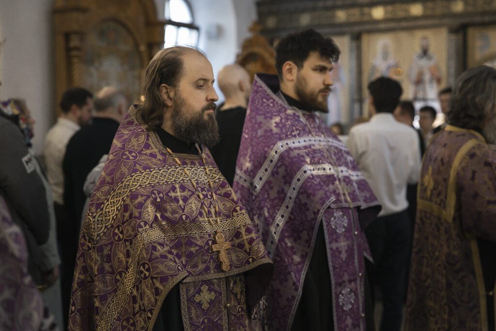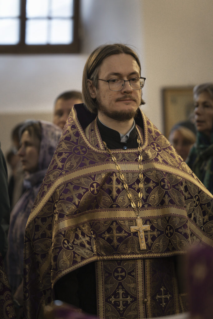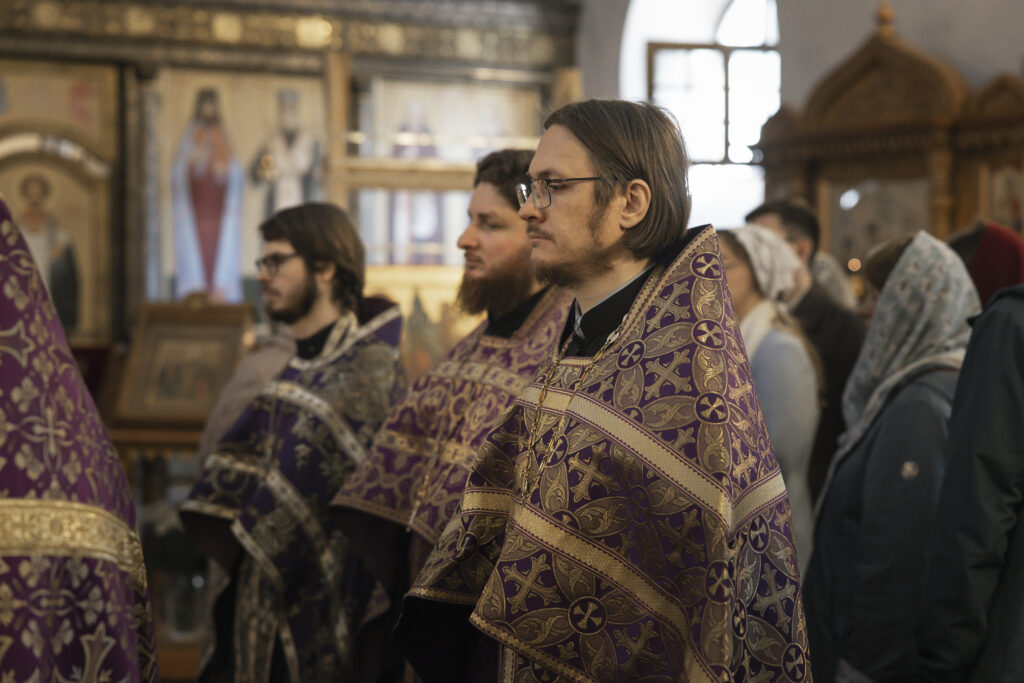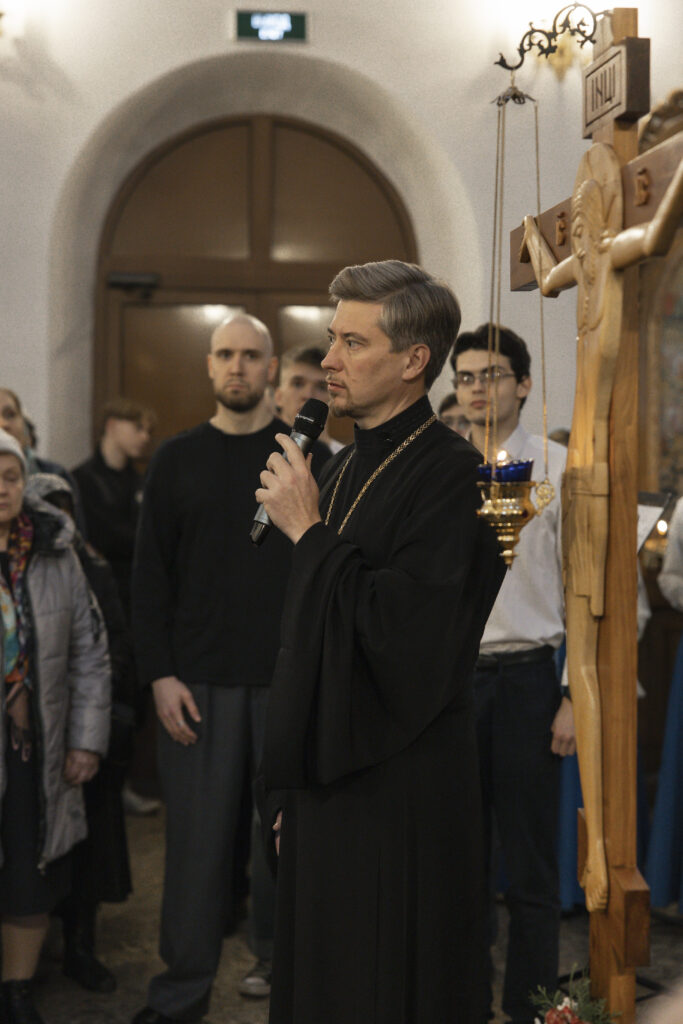 Богослужение возглавил председатель Отдела по делам молодежи Московской епархии протоиерей Кирилл Сладков в сослужении приходских ответственных за работу с молодежью в священном сане.