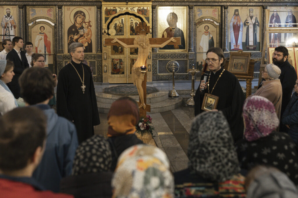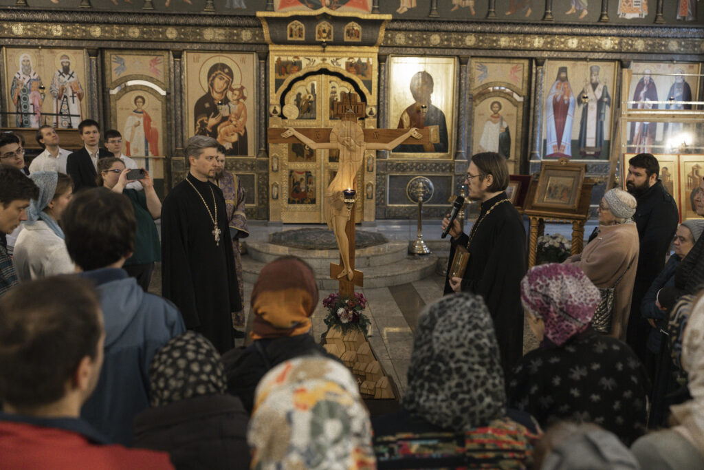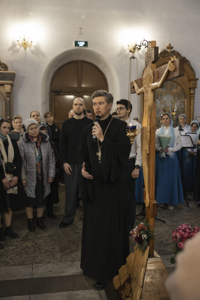 Вечером 29 марта 2026 года, в Неделю 5-ю Великого поста, в храме Казанской (Песчанской) иконы Божьей Матери в Измайлове была совершена Пассия — вечерня с акафистом спасительным Страстям Христовым и чтением отрывка из Евангелия от Иоанна о Страстях Спасителя, за которым молились представители молодежных объединений храмов Восточного викариатства г. Москвы.