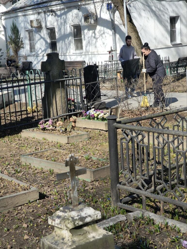 Вместе с клириком храма диконом Владиславом Смирновым волонтеры убрали оставшийся снег, привели в порядок территорию кладбища, помыли окна в храме. После трудовых послушаний прихожане за дружеской беседой провели трапезу.