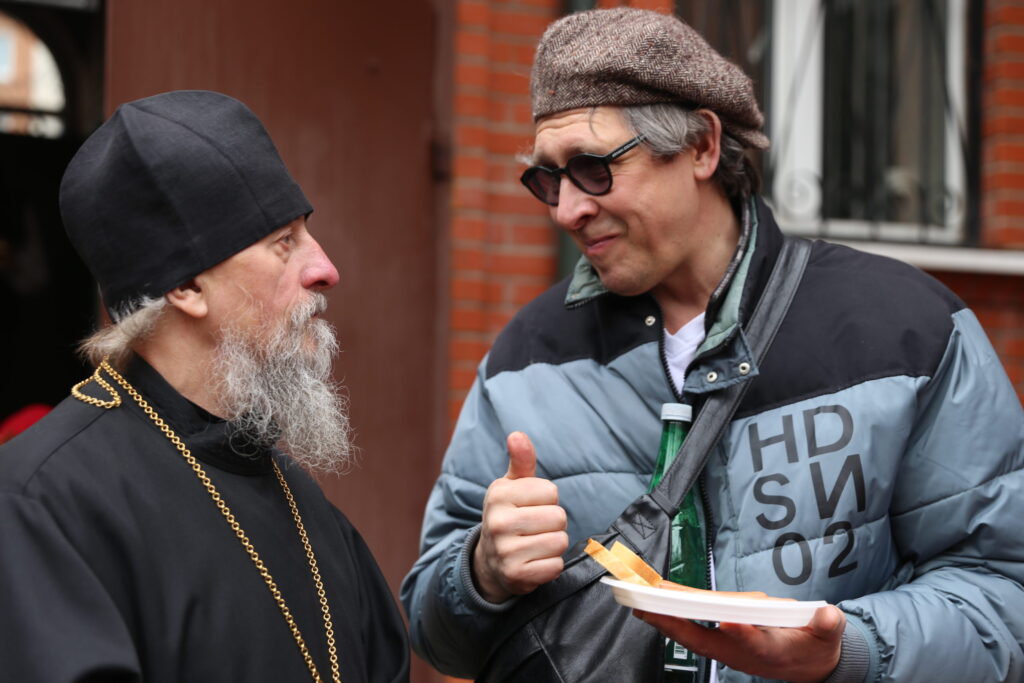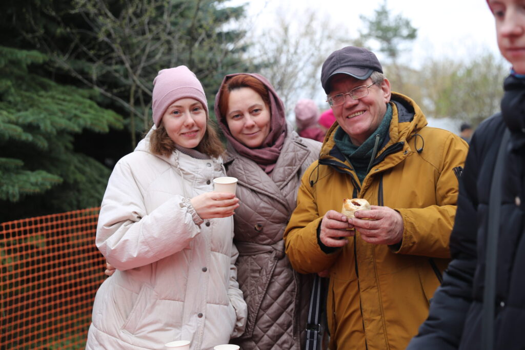 Настоятель храма иерей Павел Огрызков рассказал гостям историю создания своей общины. Храм на этом месте долгожданный. Как это часто случается в нашей московской программе, все началось с молебнов под открытым небом. «Жители из близлежащих домов все чаще и чаще стали ко мне подходить и спрашивать, когда же, когда же будет здесь храм, — продолжил настоятель. — Молитвами всех этих людей и был воздвигнут наш храм. Кроме того, я окормляю многодетные семьи, а это значит – нам нужно место для воскресной школы и социальных служб. Так появился и деревянный приходской дом. В строительстве участвовали прихожане. Мы вообще многое делаем все вместе. Всем миром, как говорится».